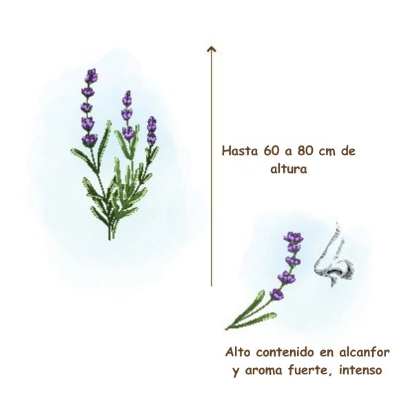 - 50 % de ésteres (acetato de linalilo, de bornilo, de geranilo, lavandulilo)