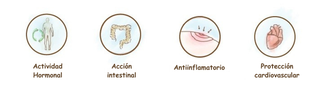 Actividad hormonal | Acción intestinal | Antiinflamatorio | Protección cardiovascular