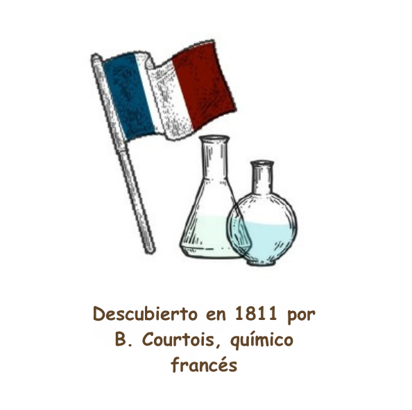 El yodo está presente en estado natural desde el inicio de la vida terrestre. En 1811, el químico francés Bernard Courtois hizo su descubrimiento fortuito al observar una luz violeta emanada de algas de varech que estaban ardiendo. Intrigado por este fenómeno, logró aislar la sustancia responsable: el yodo. Este último toma un color violeta cuando se evapora bajo el efecto del calor.